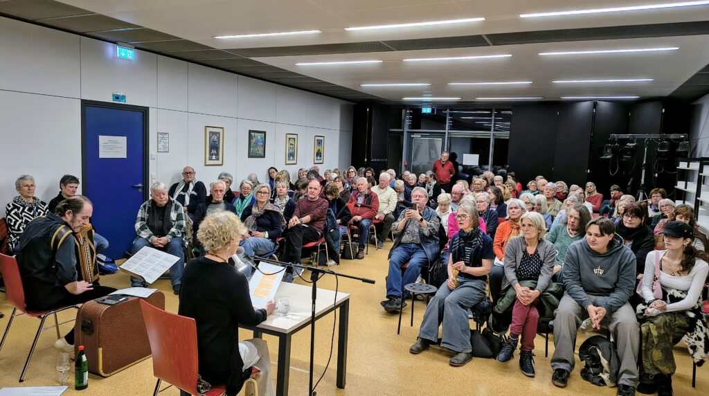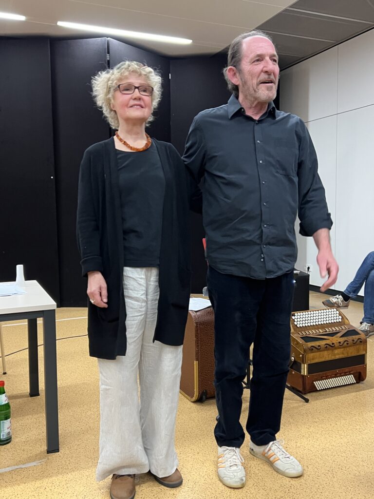 Die Veranstaltung endete mit der „Internationale“ – nach Art der Kohlmeise von Laurent Leroi aus dem Akkordeon gezaubert. DANKE!