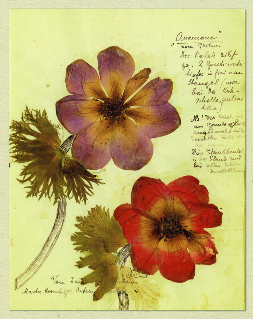 Aber auch hier, an diesen ungastlichen Orten, blieben ihre Leidenschaften ungebrochen. Sie sammelte Blumen und Pflanzen – zu Hunderten. In 18 Hefte gepresst und penibel beschriftet, Gräser, Blüten, Blätter – alles, was sie fand oder was Freundinnen ihr ins Gefängnis brachten.