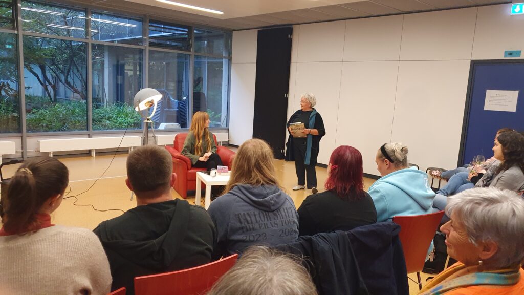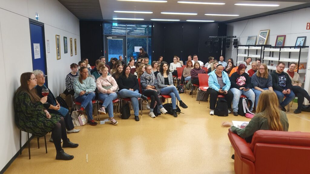 Wir lernten dann an diesem Abend eine aufgeweckte Gruppe kennen, die sich teilweise untereinander kannte, auf jeden Fall aber sehr gut vertraut war mit den Texten der Autorin und öfter auch mit ihr selbst. „Ach ja, wir kennen uns von Instagramm oder war es Tik Tok“?