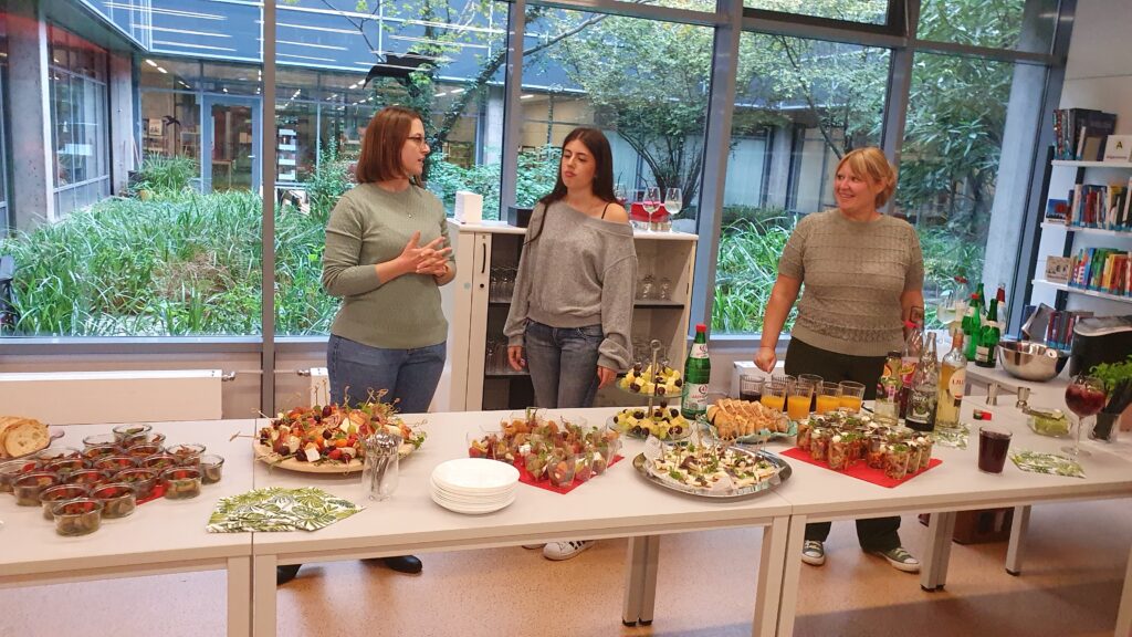 Wie immer hatten die Kolleginnen der Stadtbücherei mit Helfern ein phantastisches Buffet vorbereitet. Wir konnten es in der Pause zusammen mit einem Schluck Wasser, Wein, Schorle oder auch einem Hugo genießen.