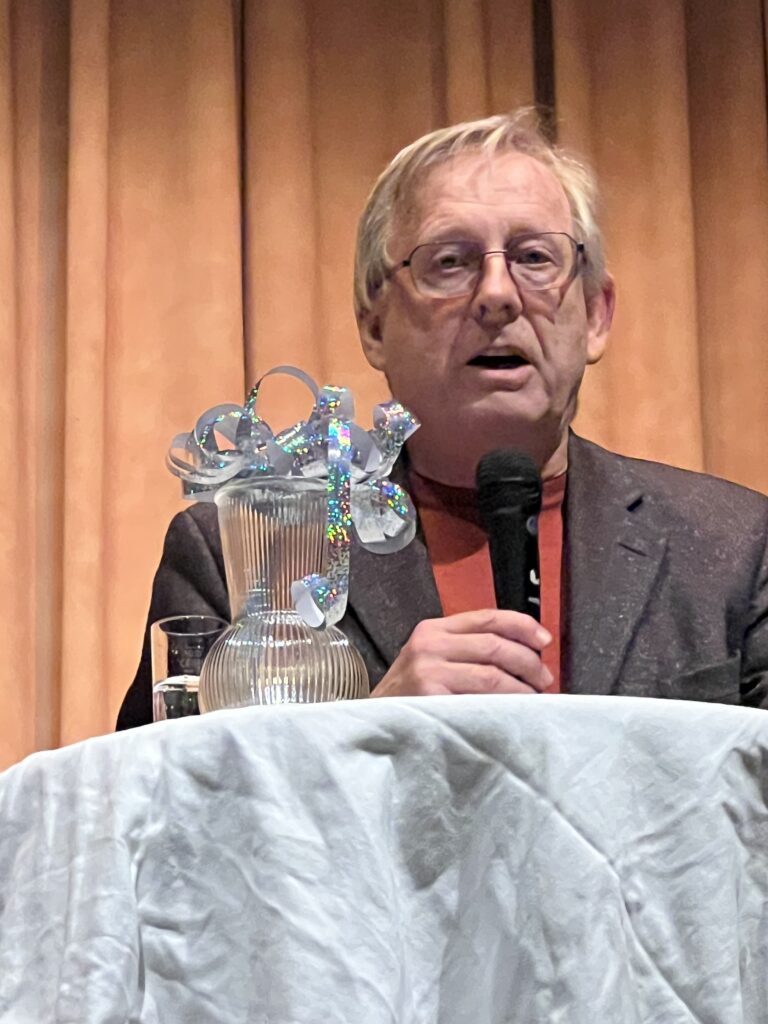 Anschließend kam der Vorsitzende der IGH Thomas Trüper zu Wort. Nachdem er über das fünfzigste Jubiläum des Herzogenried und die diesbezüglichen Feiern und Aktivitäten im Quartier und seinen Einrichtungen (wie Atelier für Kunst und Natur, KulturPoint oder Stadtteilbibliothek) berichtet hatte, kündigte er künftige schon zur Tradition gewordene und neue ehrenamtliche Angebote und Möglichkeiten für alle Bewohner an. Er verdeutlichte aber auch die leider ab 2026 durch neue politische Maßnahmen und Vorgaben deutlich erschwerten Randbedingungen bei der ehrenamtlichen Umsetzung der Angebote. Sein engagierter Vortrag wurde als einzige Rede des Abends mehrfach durch heftigen Szenenapplaus unterbrochen. Deshalb liegt sein Manuskript zum Nachlesen auch als Anlage diesem Artikel bei.
