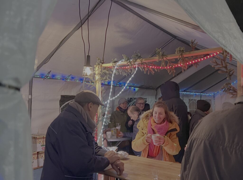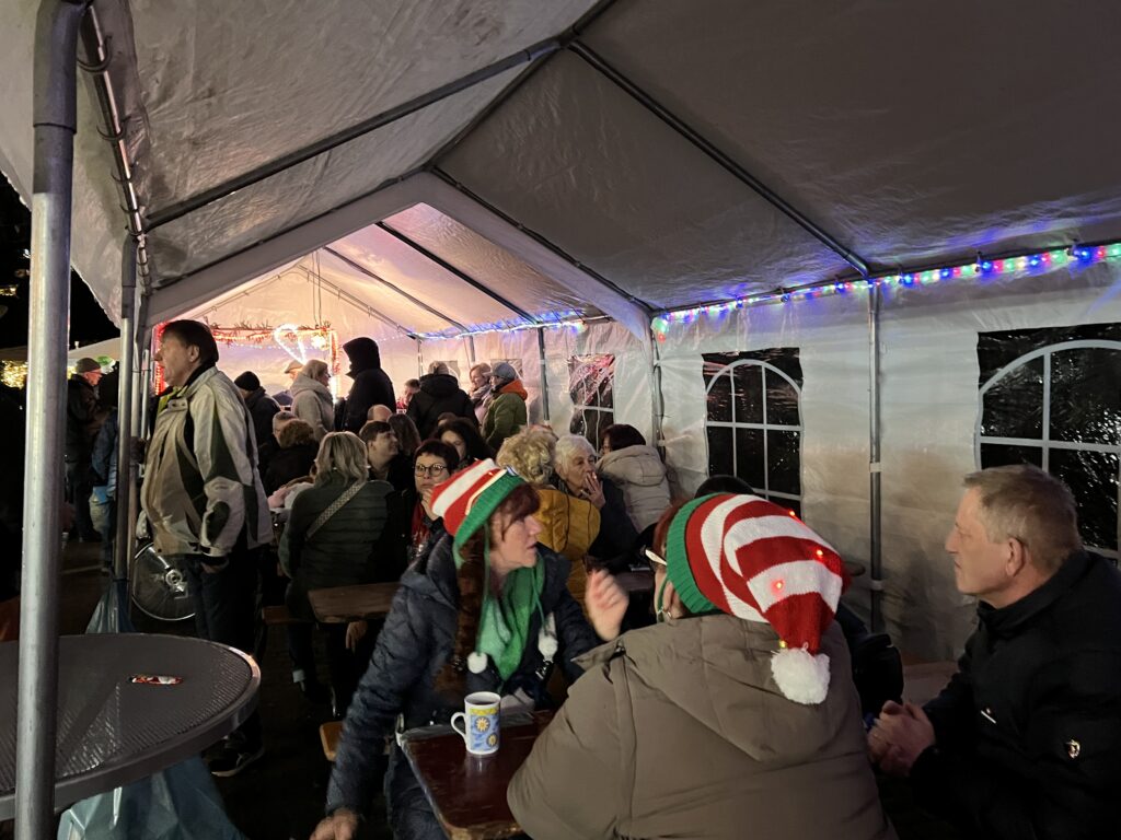 Auch die durstigen Kehlen kamen nicht zu kurz! Neben Säften, Kaltgetränken, Weinschorlen, Weinen und Bieren oder einem Schnäppschen gab es natürlich auch Heißes wie: Kaffee, Tee, Kinderpunsch, Apfelpunsch (mit und ohne Calvados) und natürlich „heißbegehrt“ süffiger Glühwein.