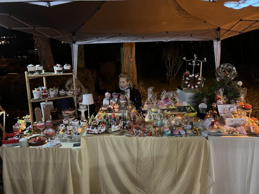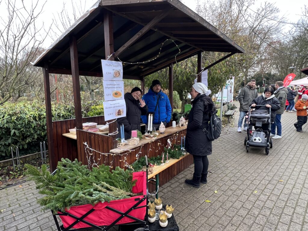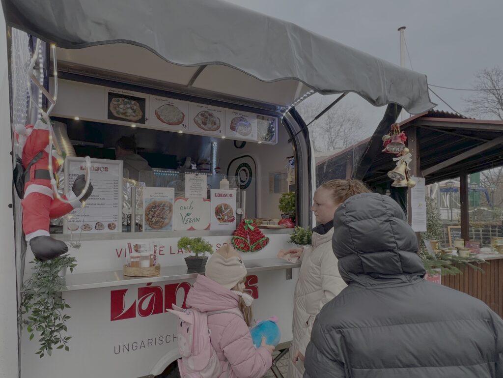 Wie auf Weihnachtsmärkten üblich, war bestens für das leibliche Wohl gesorgt. Je nach Lust und Laune konnten mit gutem Gewissen leckere Hamburger, frischgegrillte Bratwürste im Brötchen, frisch frittierte Pommes, süße oder herzhafte ungarische Langoschs, hausgemachte Suppen oder Bratäpfel geschlemmert werden.